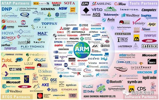 公司成立初期缺乏资金,业绩是寸步难行,鉴于此种情况,ARM做了一个影响时代的决定:ARM不制造芯片,只将芯片的设计方案(IP)授权给半导体合作伙伴(高通、苹果、MTK及三星等),后者使用ARM的架构、设计以及开发工具推出自己的处理器,然后再供应给OEM客户(各种手机、平板厂商),各芯片公司再根据自己的需求进行一些改进。从此,ARM 的公司在商业上开启了设计授权之路,殊不知此决定在十几年后改变了智能手机芯片市场,也正是借由此模式的开展,使得ARM芯片业务遍地开花,甚至连PC领域的老大英特尔也不由感叹。