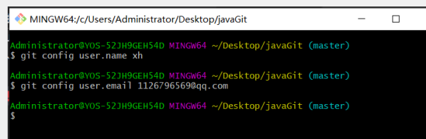 我们打开Git使用git config user.name ***和git config user email ***创建一个账户。