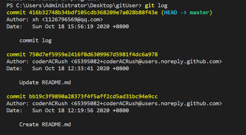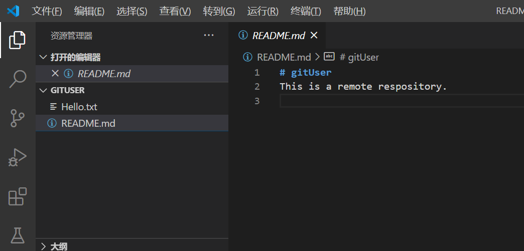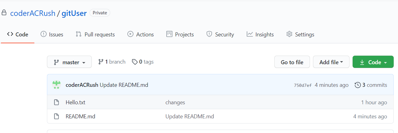 然后使用git push https://github.com/coderACRush/gitUser推送到远端版本库。