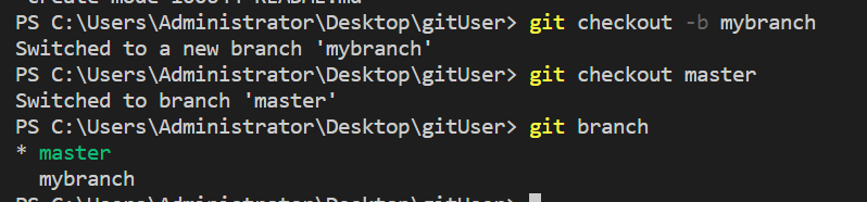 使用git checkout -b mybranch命令创建一个新的分支,使用git checkout master可以签出到master分支,使用git branch可以查看所有分支。