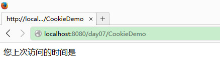 在浏览器地址中输入:http://localhost:8080/day07/CookieDemo,回车: