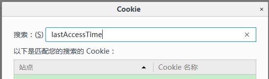 先使用火狐浏览器搜索Cookie选项,搜索“lastAccessTime”,发现没有lastAccessTime文件: