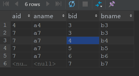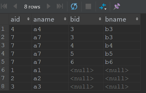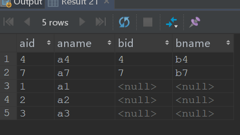执行语句: select * from a LEFT JOIN b on aid=bid