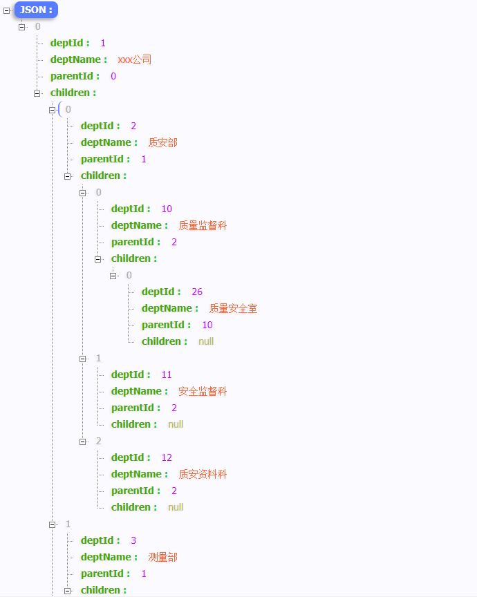 构建部门目录树代码