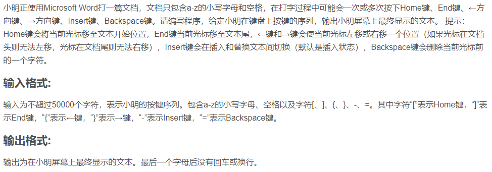这也是一道模拟题,初次看可能会犹豫该不该使用vector容器来模拟操作,毕竟50000个字符操作量还是很大的。不妨试一试?毕竟要实现一个双端队列还是挺麻烦的事情。