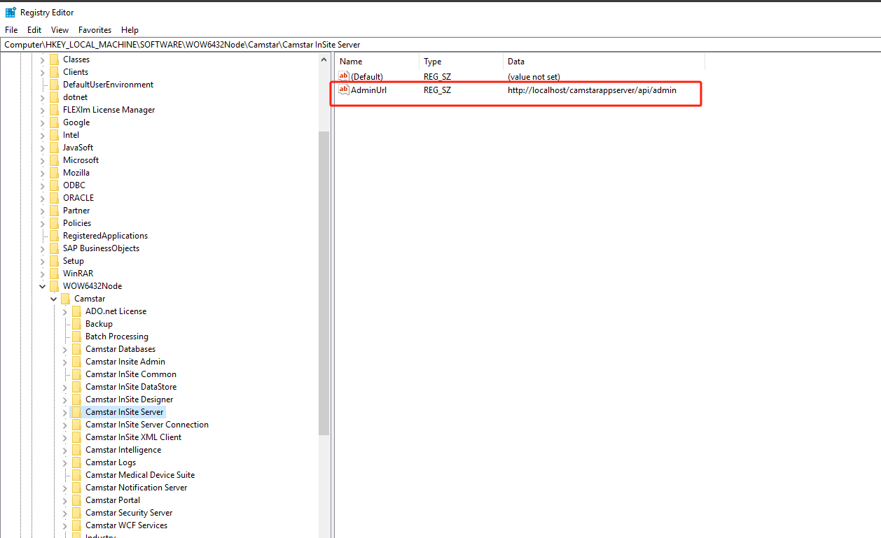 找到路径:"HKEY_LOCAL_MACHINE\SOFTWARE\WOW6432Node\Camstar\Camstar InSite Server"