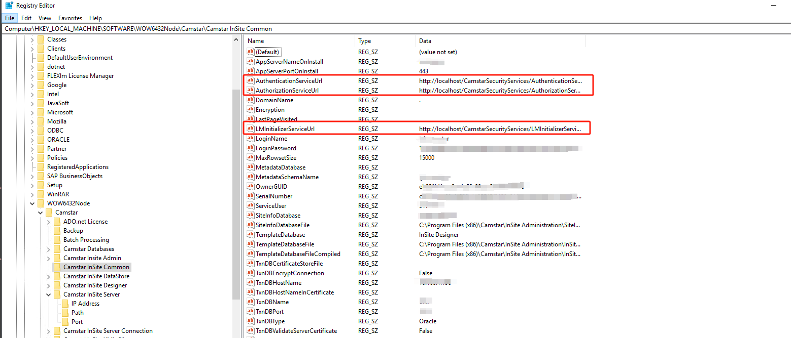 路径3:"HKEY_LOCAL_MACHINE\SOFTWARE\WOW6432Node\Camstar\Camstar InSite Common" ——>LMInitializerServiceUrl