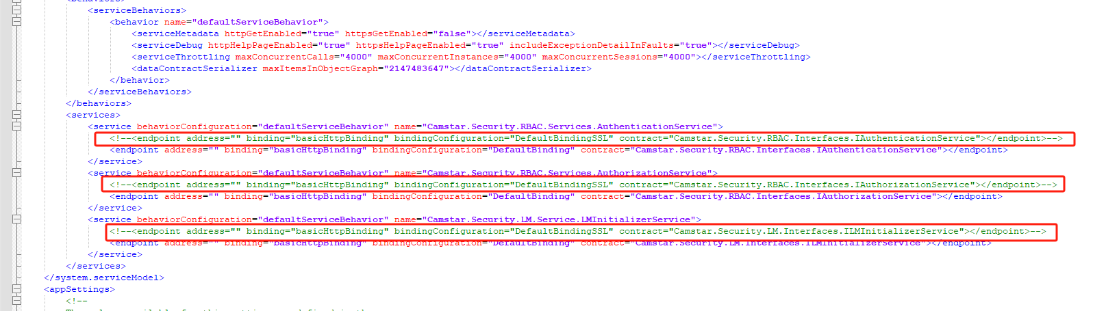 <endpoint address="" binding="basicHttpBinding" bindingConfiguration="DefaultBindingSSL" contract="Camstar.Security.LM.Interfaces.ILMInitializerService"></endpoint>