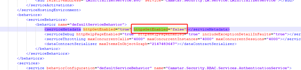 <serviceMetadata httpGetEnabled="true" httpsGetEnabled="false"></serviceMetadata>