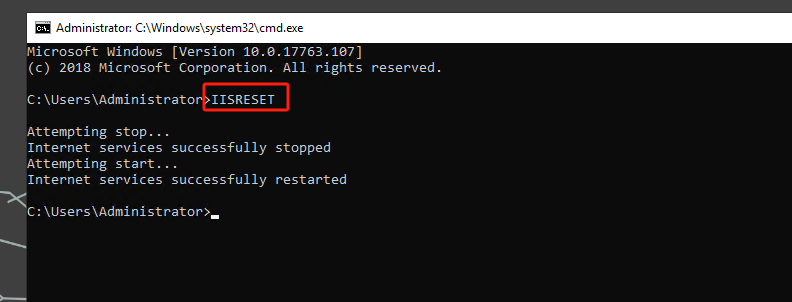 Step 5:重置一下IIS: IISRESET