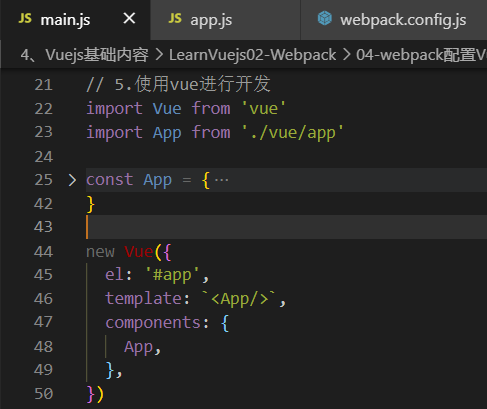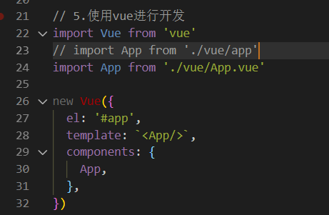 - 将组件的内容单独封装到一个js文件中,通过import方式引入,原组件可以去除(const App可以删了)