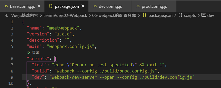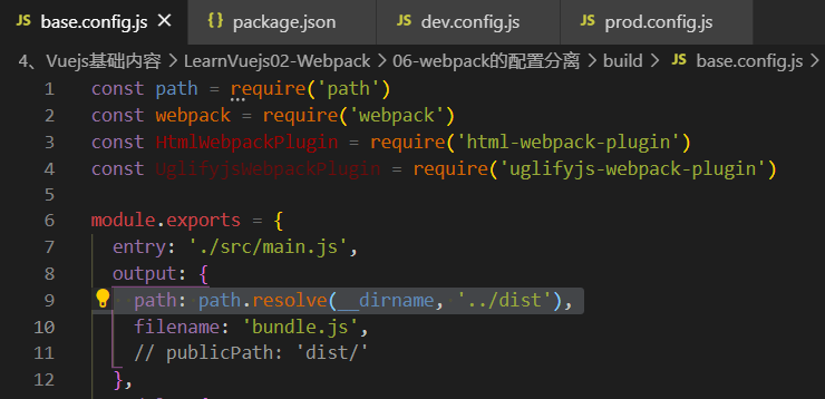 4.1.1 新建三个文件:base.config.js,dev.config.js,prod.config.js