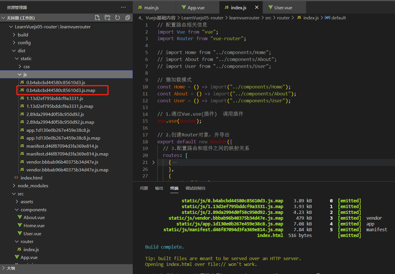 map文件作用:项目打包后,代码都是经过压缩加密的,如果运行时报错,输出的错误信息无法准确得知是哪里的代码报错。有了map就可以像未加密的代码一样,准确的输出是哪一行哪一列有错。所以该文件如果项目不需要是可以去除掉。