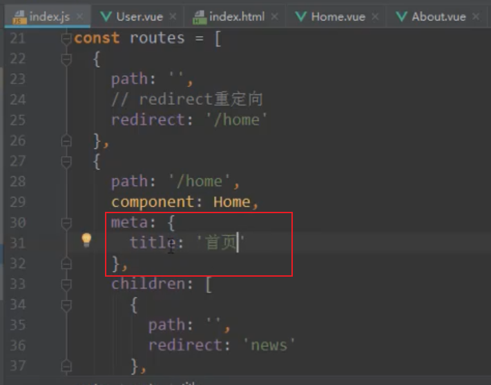 - 没有路由嵌套的时候,通过上面的方式,也能够拿到meta当中的title。
