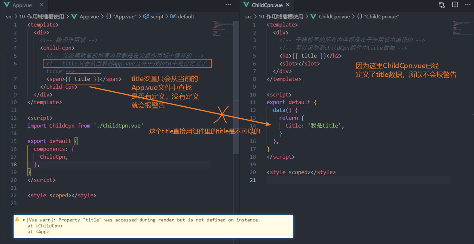 - 父级模板里的所有内容都是在父级作用域中编译的