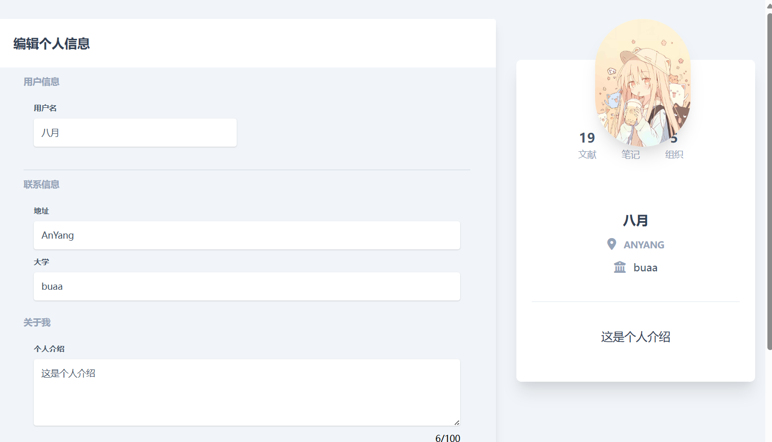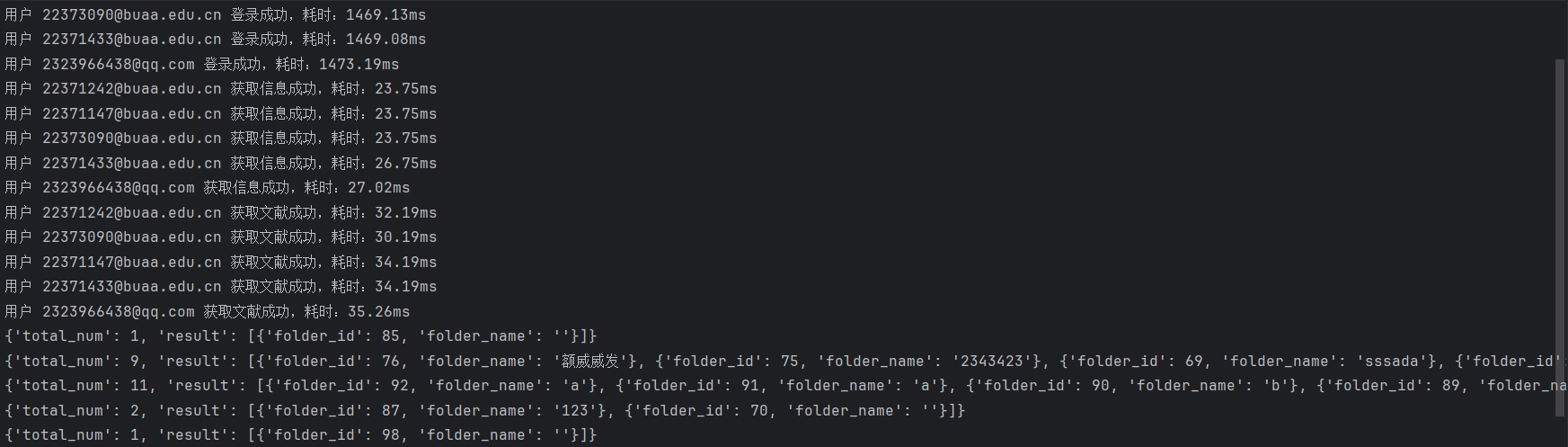 - 注册、登录、个人信息修改、上传文件、下载文件、查看文献、查看笔记、创建笔记、修改个人信息、修改密码、删除文件、删除笔记功能正常。
