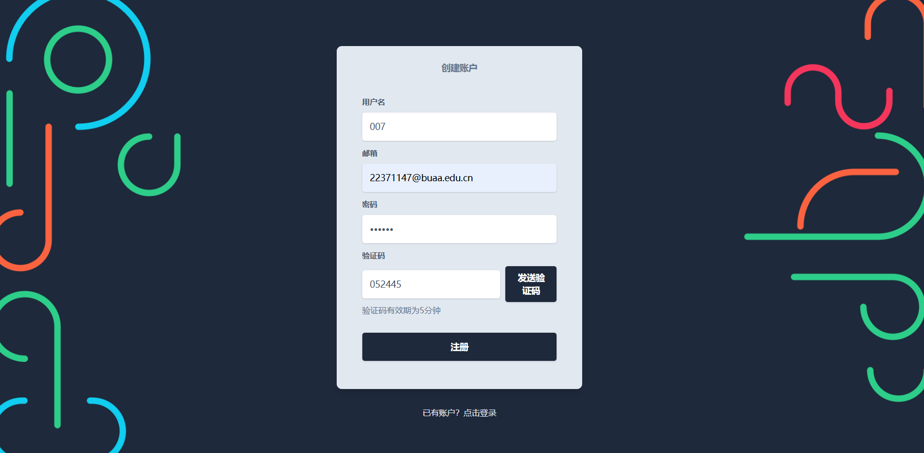 用户用邮箱注册,每个邮箱只能被注册一次。注册时,会向注册邮箱发送验证码,验证码5分钟内有效。正确填写验证码并设置密码后,方能注册成功。