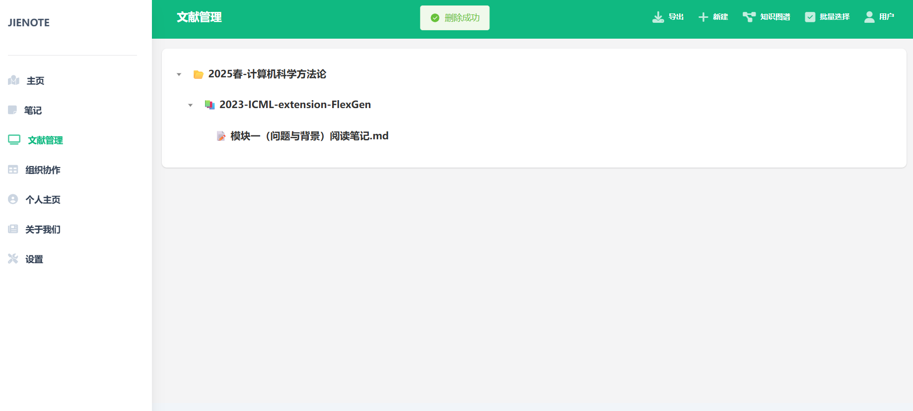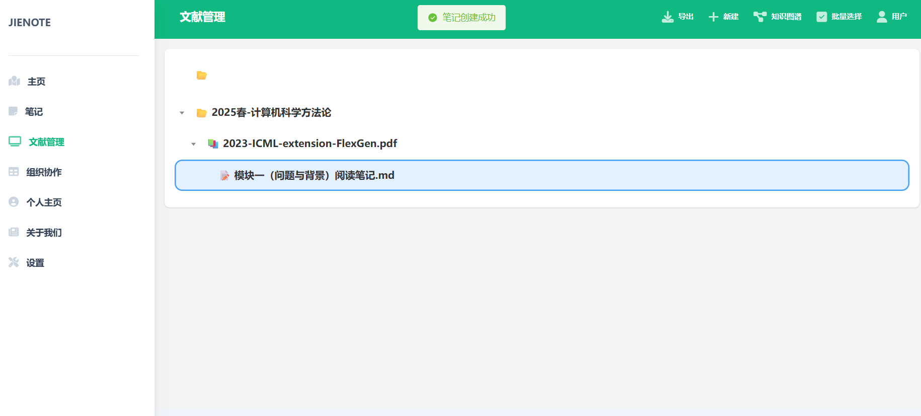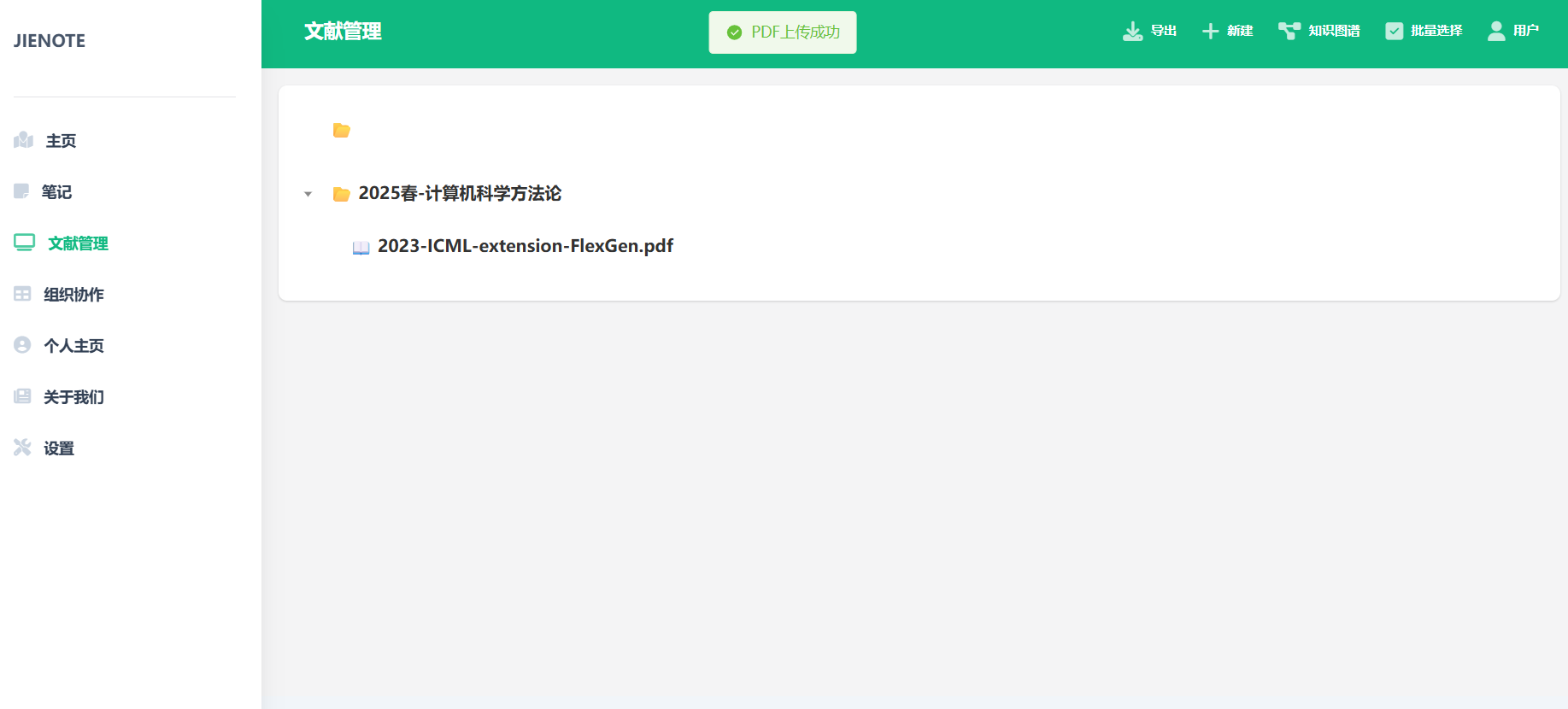 本版本实现了一个集文献管理、文献阅读、文献学习与笔记记录、笔记分类的科研工具,旨在帮助师生们更好地学习相关文献和资料。