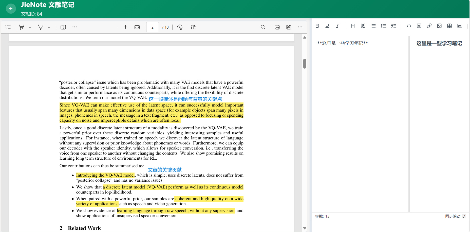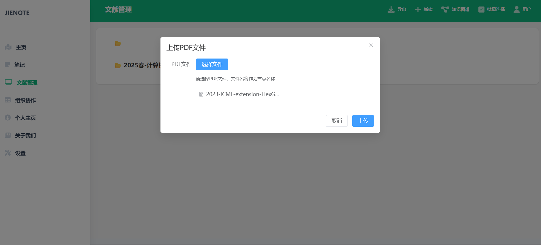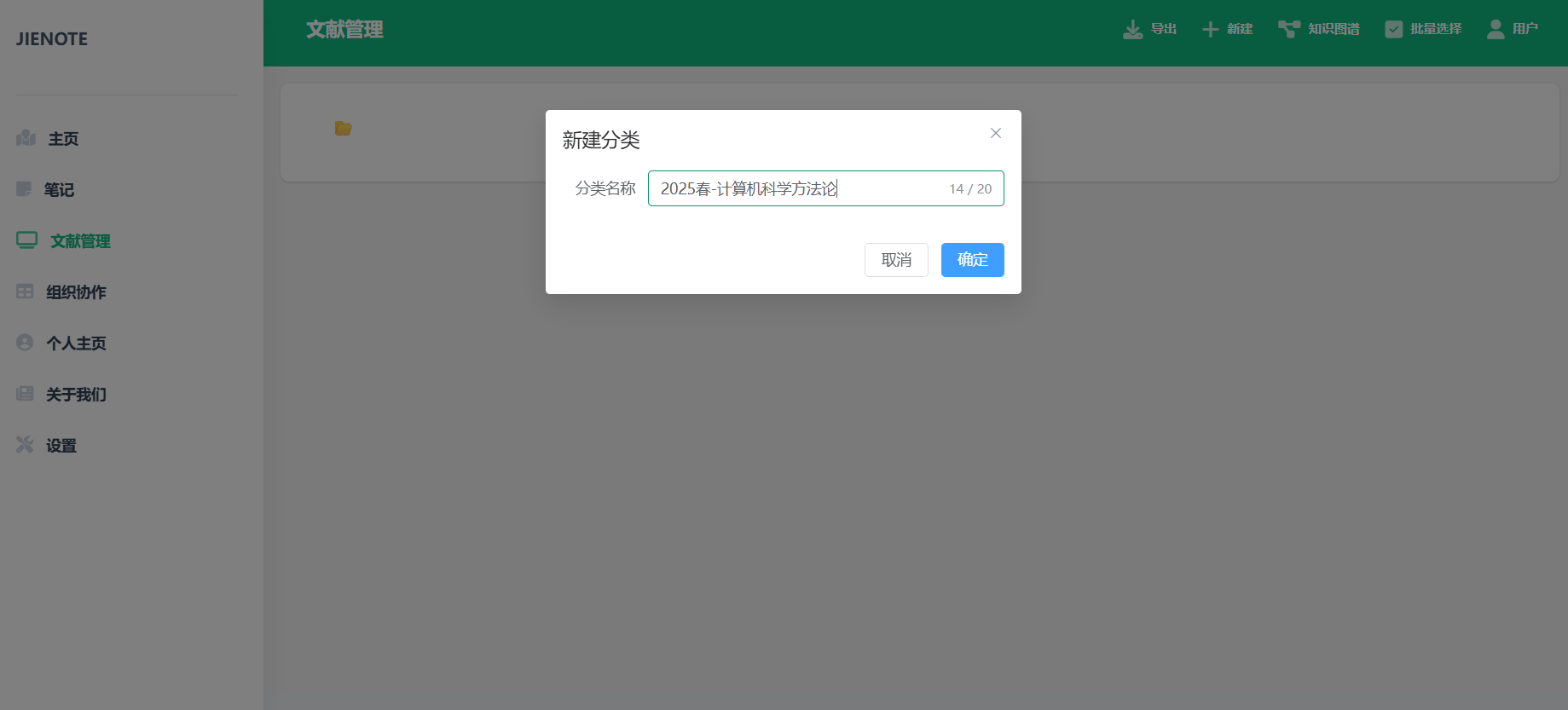 本版本实现了一个集文献管理、文献阅读、文献学习与笔记记录、笔记分类的科研工具,旨在帮助师生们更好地学习相关文献和资料。