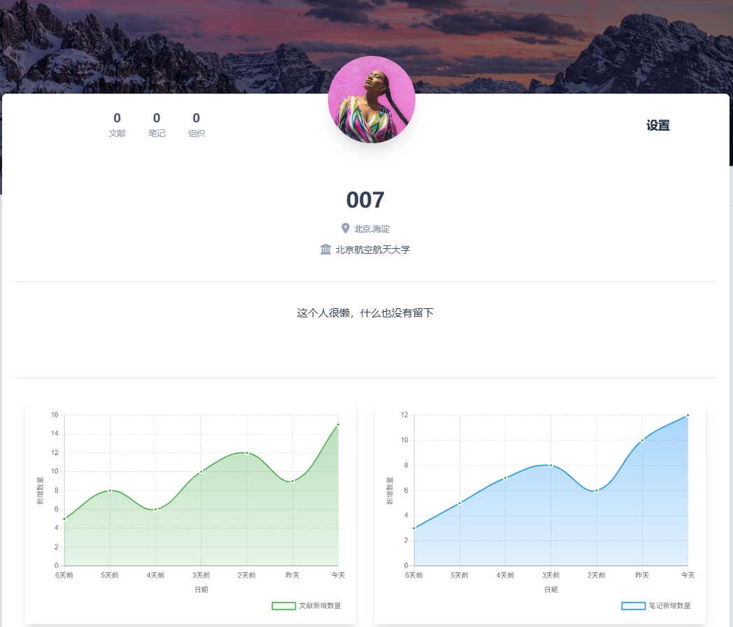 科研往往是一个团队的事,后续将开发组织管理功能,现阶段由于工作量和时间原因暂未支持