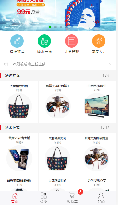 weui实现微信网页模板(主页,购物车,分类,后台等等)