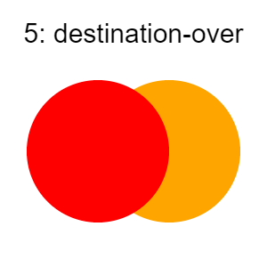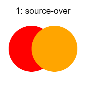 | source-over 预设值。将新图形放在旧图形之上。 | ![]() | destination-over 将新图形放在旧图形之下。 | ![]() |