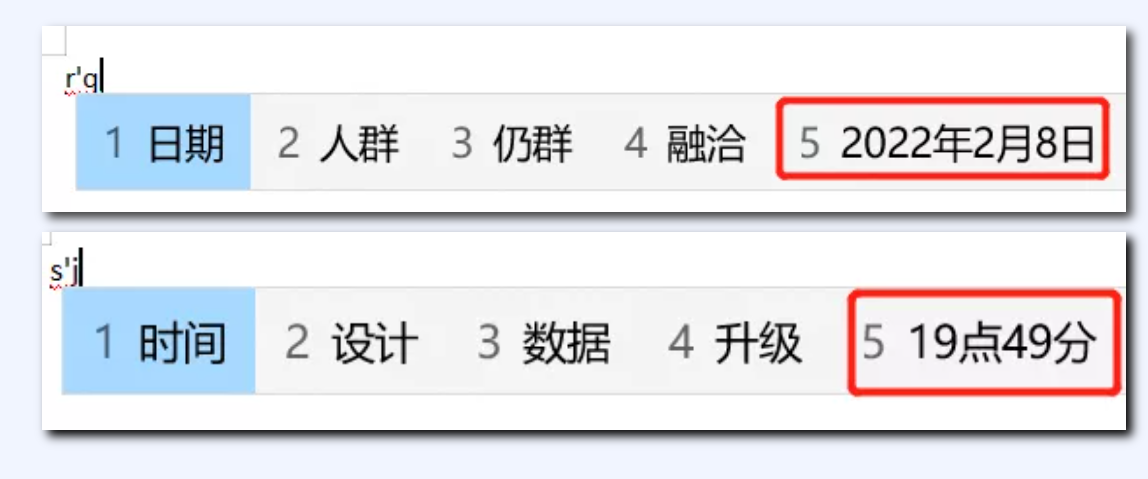 中文状态下,输入字母【rq】,就能显示出今天的日期;输入字母【sj】,就能知道当下的时间点。