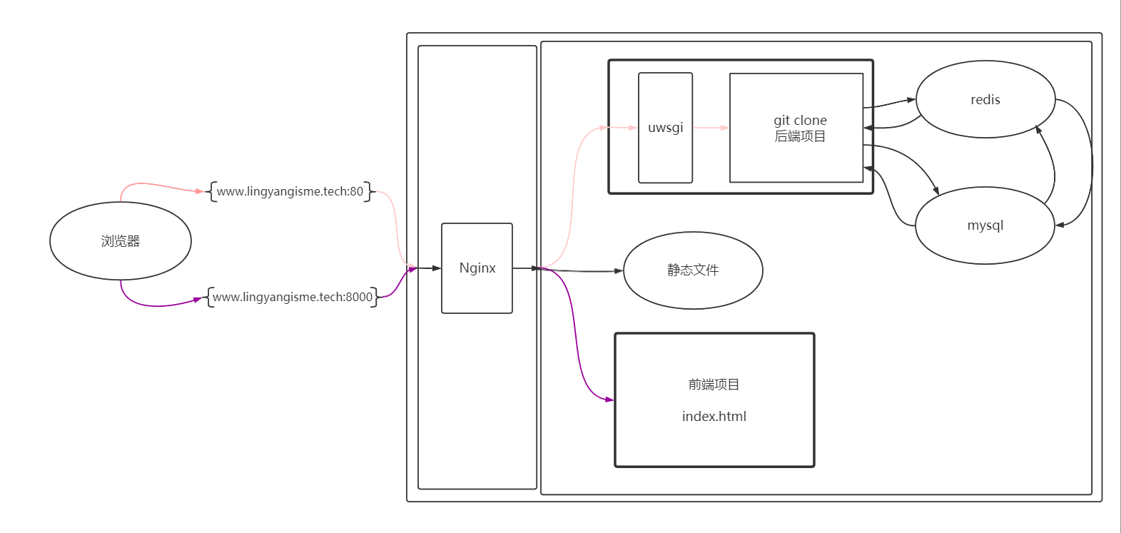 # 1)启动uwsgi uwsgi -x /home/project/luffyapi/luffyapi.xml # 2)重启nginx nginx -s reload