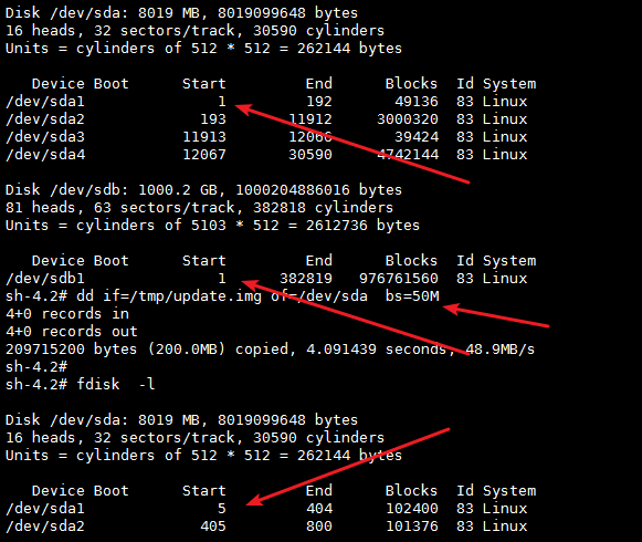 目前在更改boot分区后,发现sda1 开始柱面为5 不是从1开始的,问了一下提供镜像的研发人员,才知道原因如下: