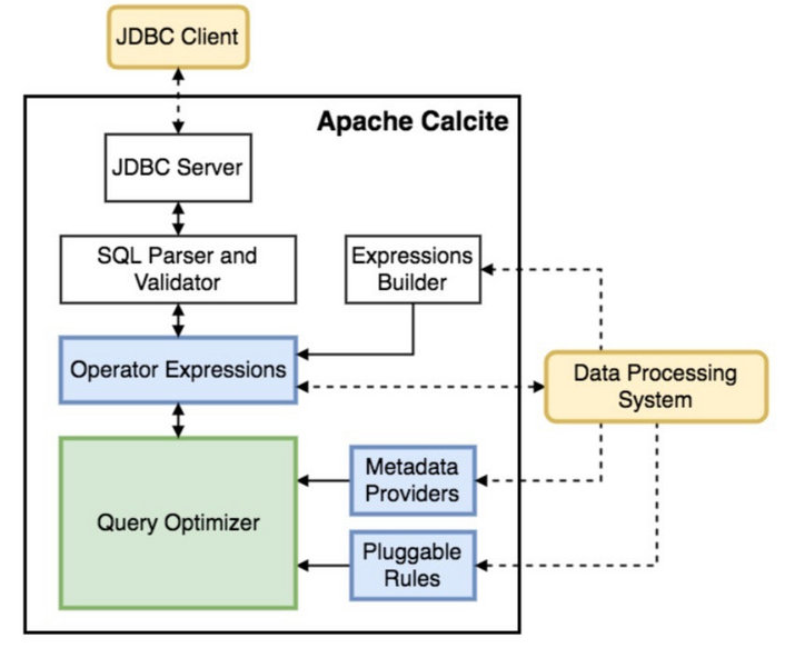 Calcite是一个开源的动态数据管理框架,可用来解析优化执行sql,提供了标准的SQL语言、多种查询优化和连接各种数据源的能力。