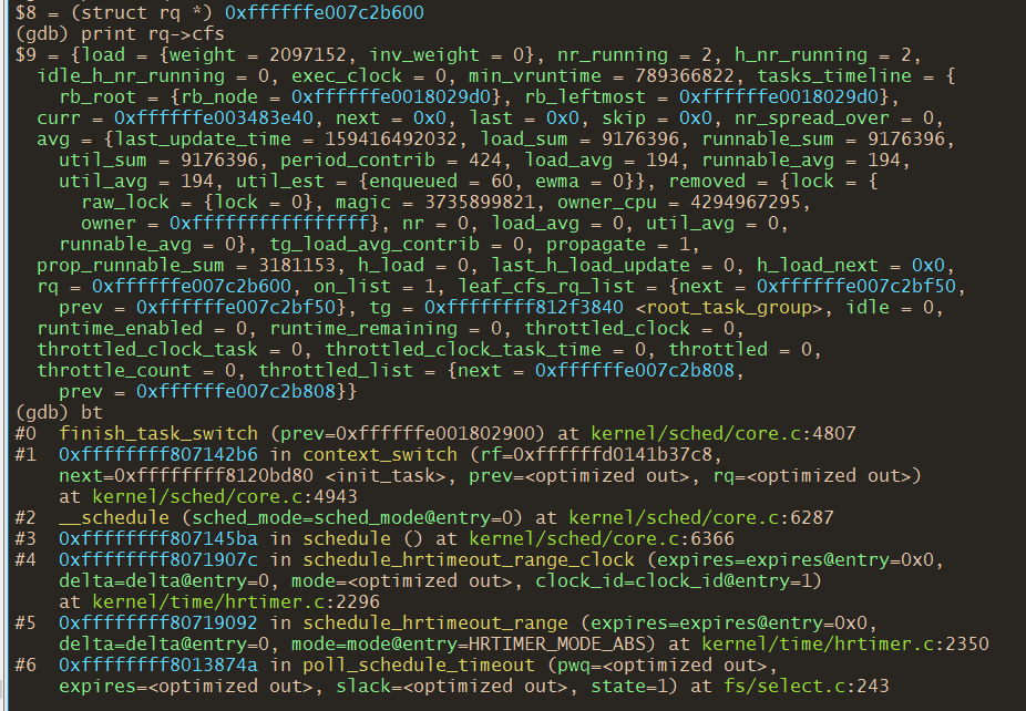 常规的gdb命令可以用于调试kernel,查看kernel运行时信息。