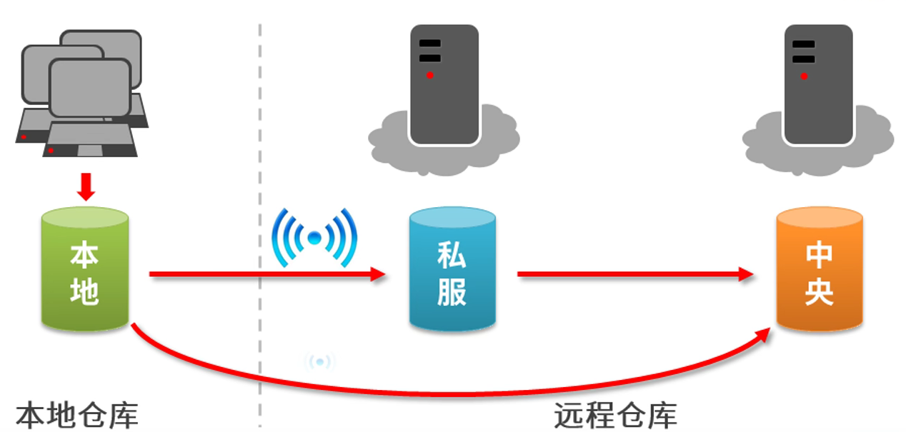 私服:部门/公司范围内存储的仓库,从中央仓库获取资源