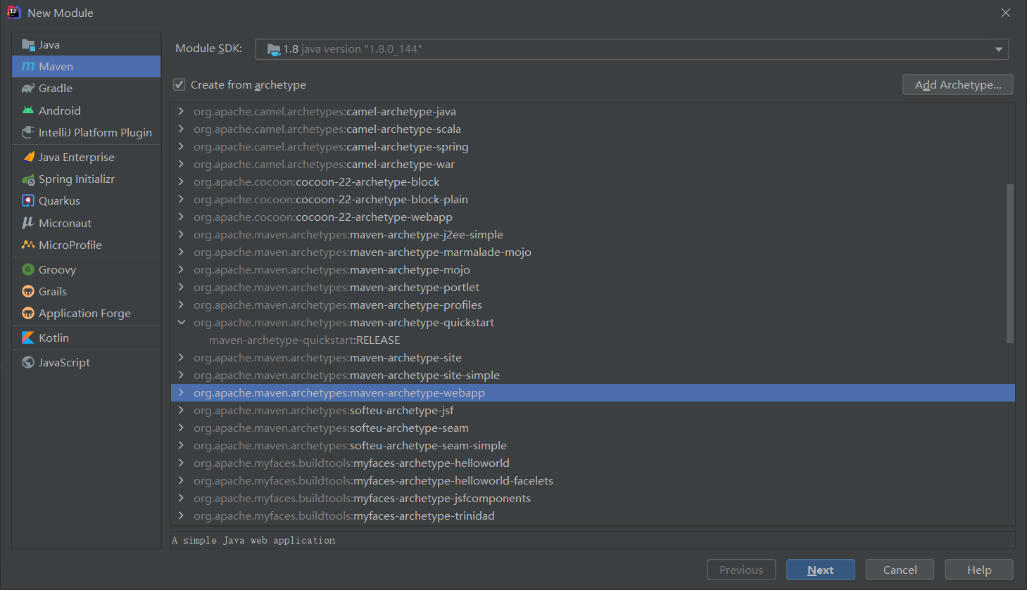 使用原型创建web项目