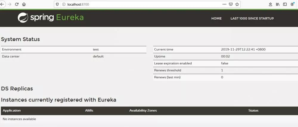 2-4、启动Eureka服务端,访问http://localhost:8700/显示
