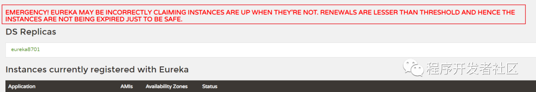 关闭自我保护模式Eureka服务端显示如下: