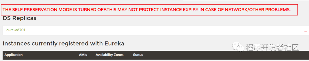 实际上,该警告就是触发了Eureka Server的自我保护机制,服务注册到Eureka Server之后,会维护个心跳连接, 告诉Eureka Server自己还活着。Eureka Server在运行期间,会统计客户端节点的心跳失败的比例在15分钟之内是否低于85%如果出现低于的情况,如果低于85%,那就触发自我保护机制,单机调试的时候很容易满足,实际在生产环境上通常是由于网络不稳定导致),Eureka Server会将当前的实例注册信息保护起来,让这些实例不会过期,尽可能保护这些注册信息。但是,在这段保护期间内实例若出现问题,那么客户端很容易拿到实际已经不存服务实例,会出现调用失败的情况,所以客户端必须要有容错机制,比如可以使用请使用重试、断路器等机制。