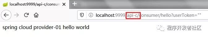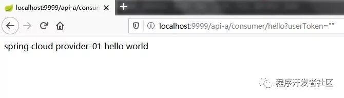 http://localhost:9999/api-b/feign/hello?userToken=""返回:spring cloud provider-01 hello world