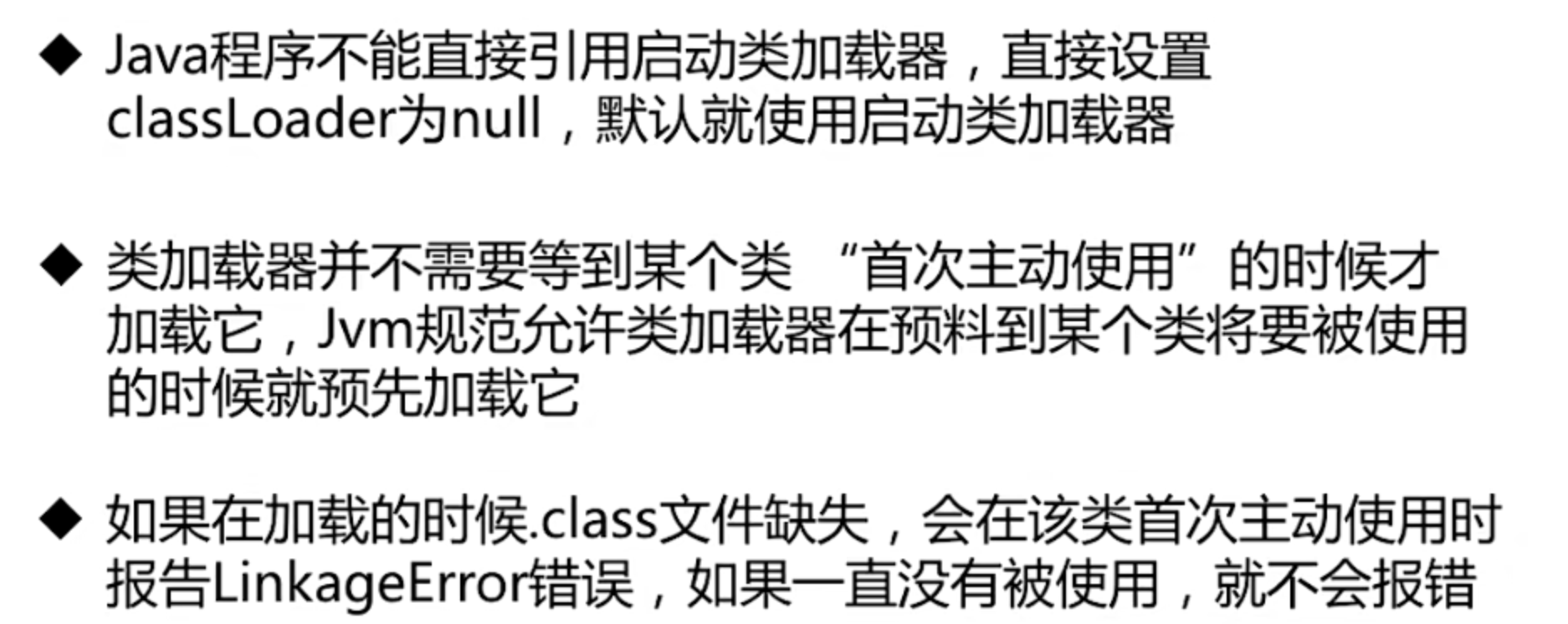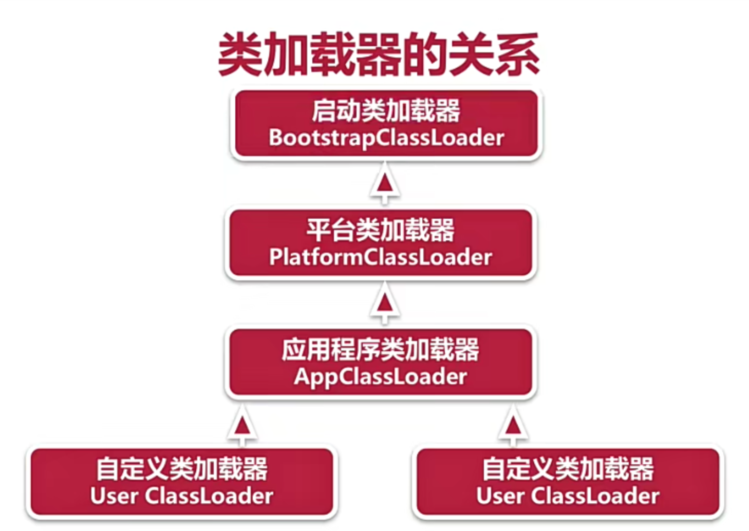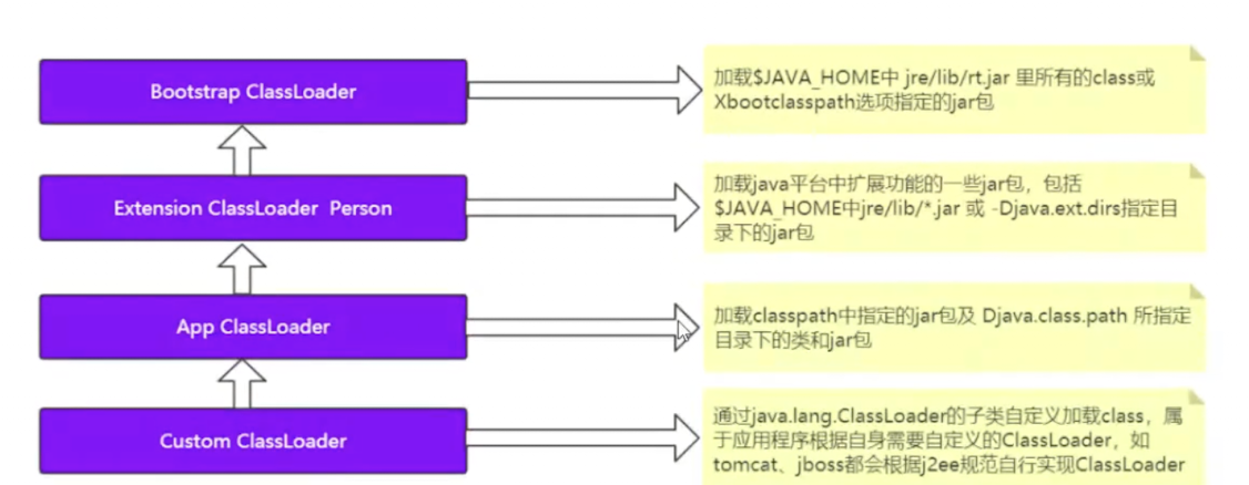 - 如果父级架子阿奇反馈他也不能完成加载请求,比如在他的搜索路径下找不到这个类,那子类加载器才能自己来加载(自己加载就是在自己的classpath下面去找存不存在这个类)