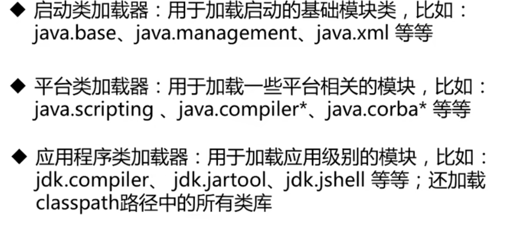 - 在类路径下找到的类 将会成为这些加载器的无名模块