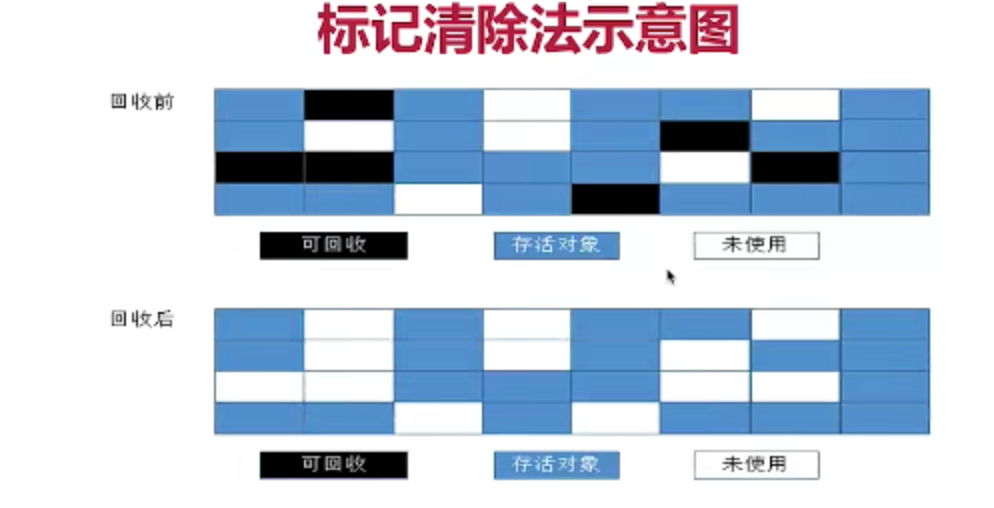 清除: 清除所有没有标记的对象