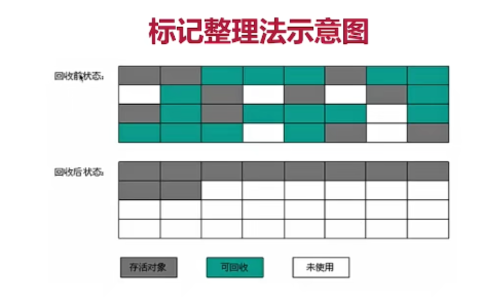 整理: 将存活的对象向堆的一端进行移动 重新排列存活对象 保证所有存活的对象都紧密排列在一起 避免咯内存碎片