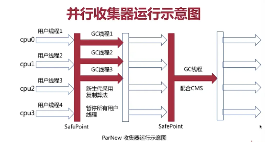 - 基于多线程进行gc回收 在gc的时候会暂停所有的用户线程(Stop-the-world)