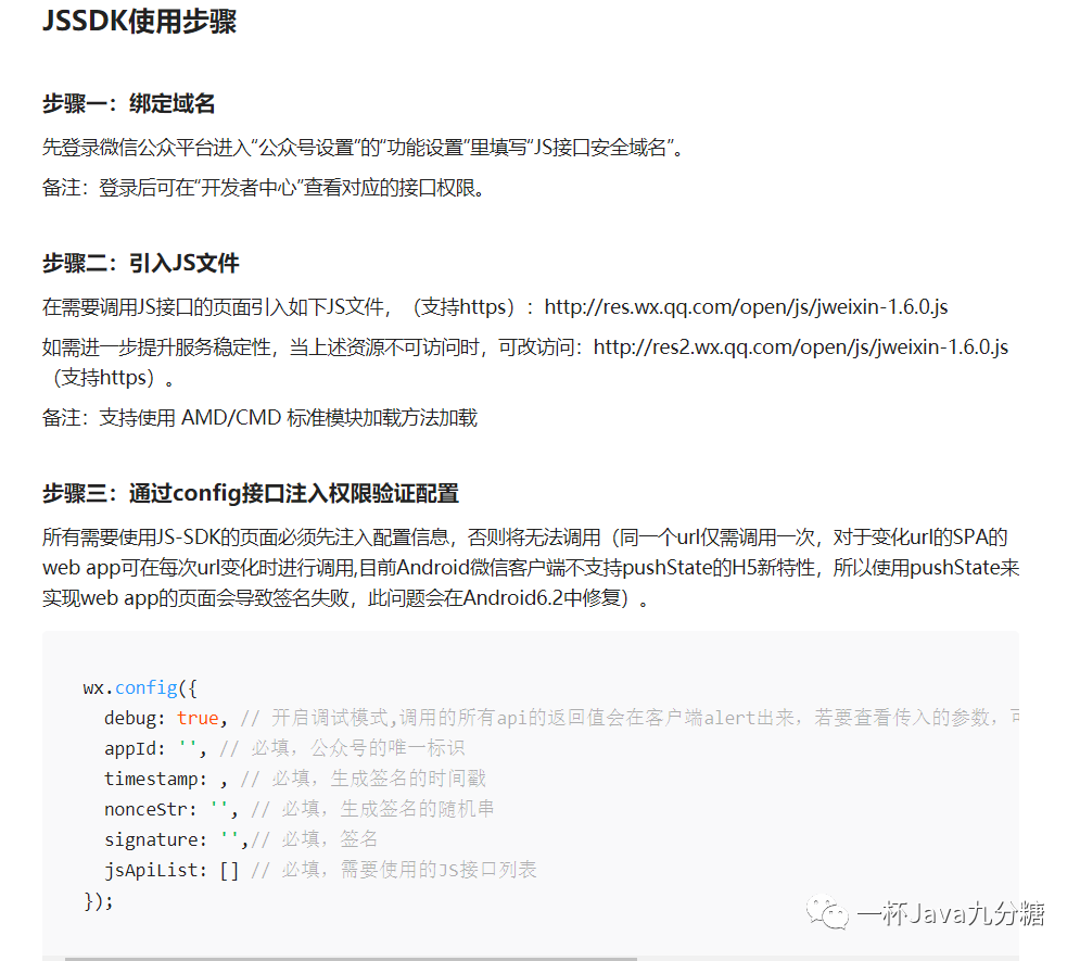 获取前端config接口配置参数(查看jssdk文档附录1)