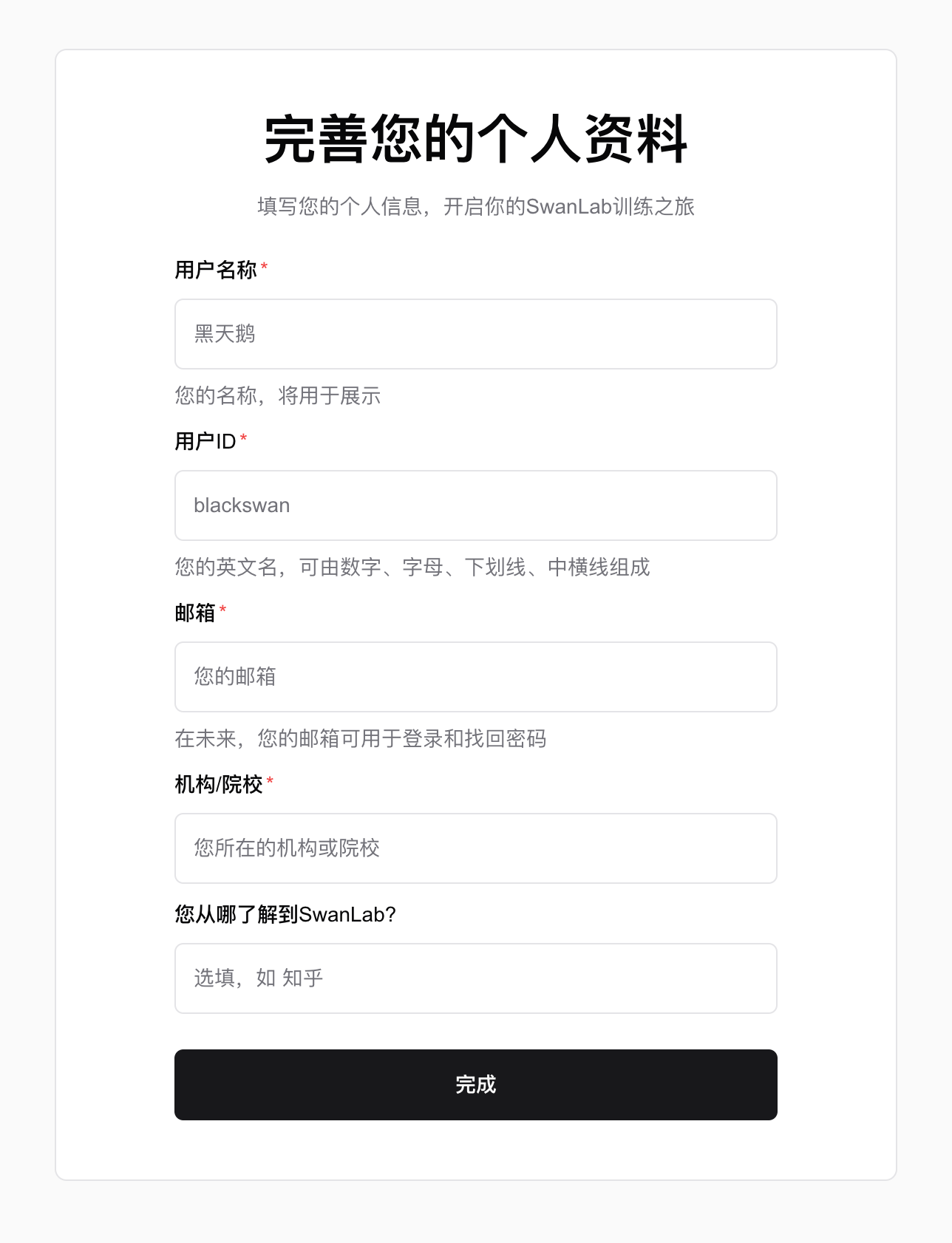 - 您从哪了解到SwanLab? :(选填项)了解到SwanLab的渠道,比如朋友介绍