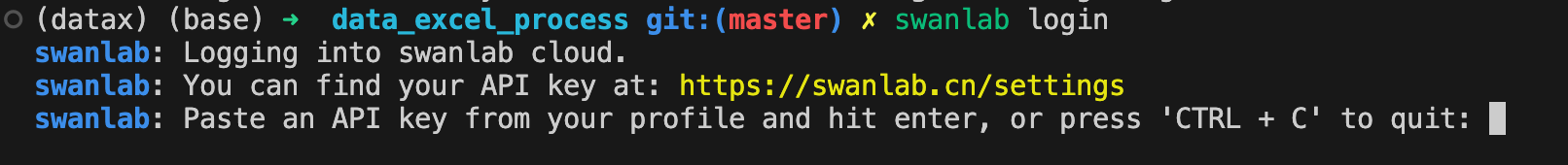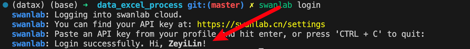在出现的提示里把API Key粘贴进去(粘贴完不显示密码是正常的,这是命令行的特性),然后按回车,完成登录。