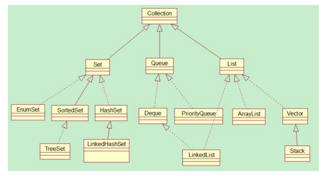 collection继承了Iterator(迭代器),是的collection可以遍历,Iterator是一个接口,包含以下三个方法: