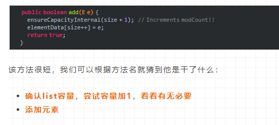 - add方法有两个,一个直接在尾部添加,一个在指定位置添加。add(e),在尾部添加,每次添加需要判断容量是否够
