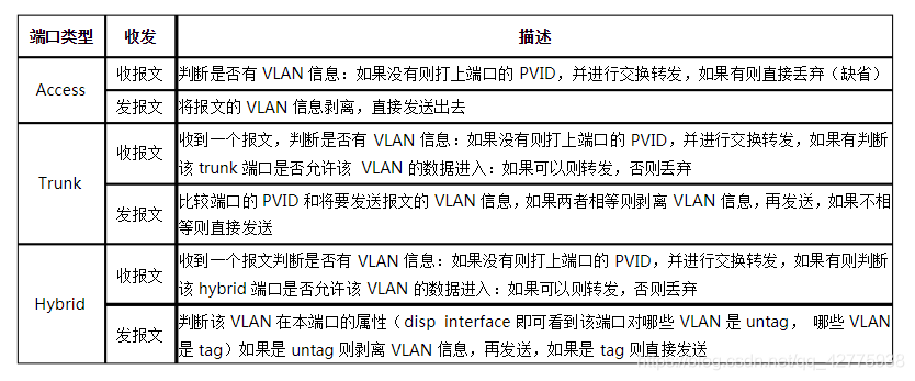 (3)Access端口的收发规则:不接收带标签的数据包,发出的数据包也是不带标签的
