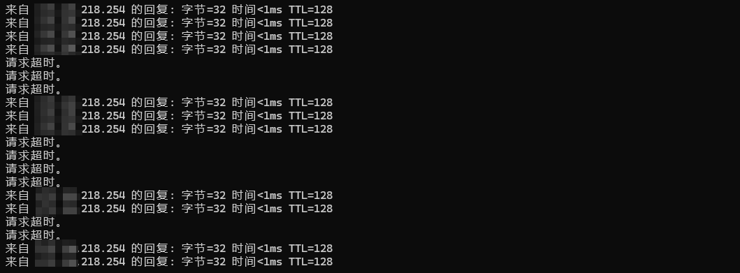 2、由于Ping测试的是到服务器网关出现规律性丢包,此时还不能断定是接入层环路导致的。于是在核心查询MAC地址冲突日志,发现核心并没有相关日志。此时可以断定是二层环路导致的规律性丢包。