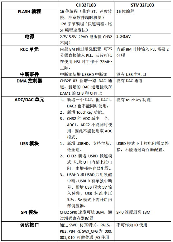 还有一份长达200多页的ch32f103和ch32v103的对比表,就请读者自行查找吧。可以问问客服。